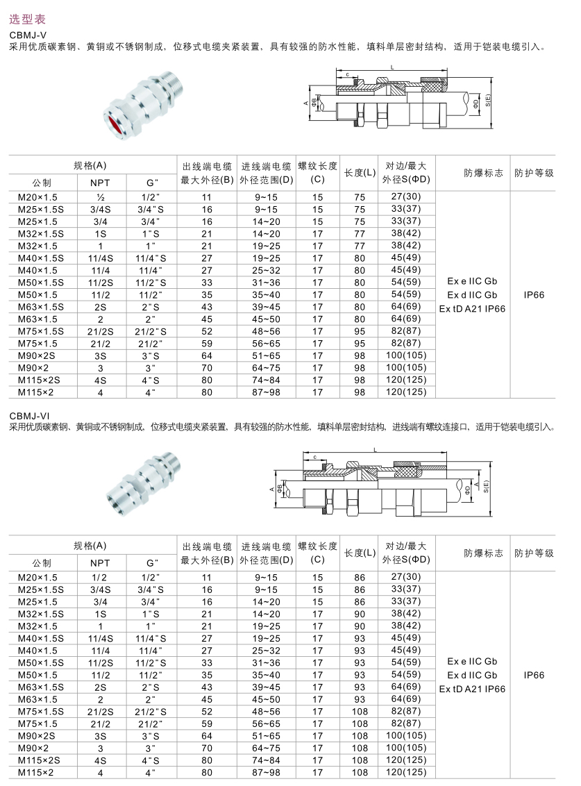 CBMJ系列防爆電纜夾緊密封接頭(dll e tD)